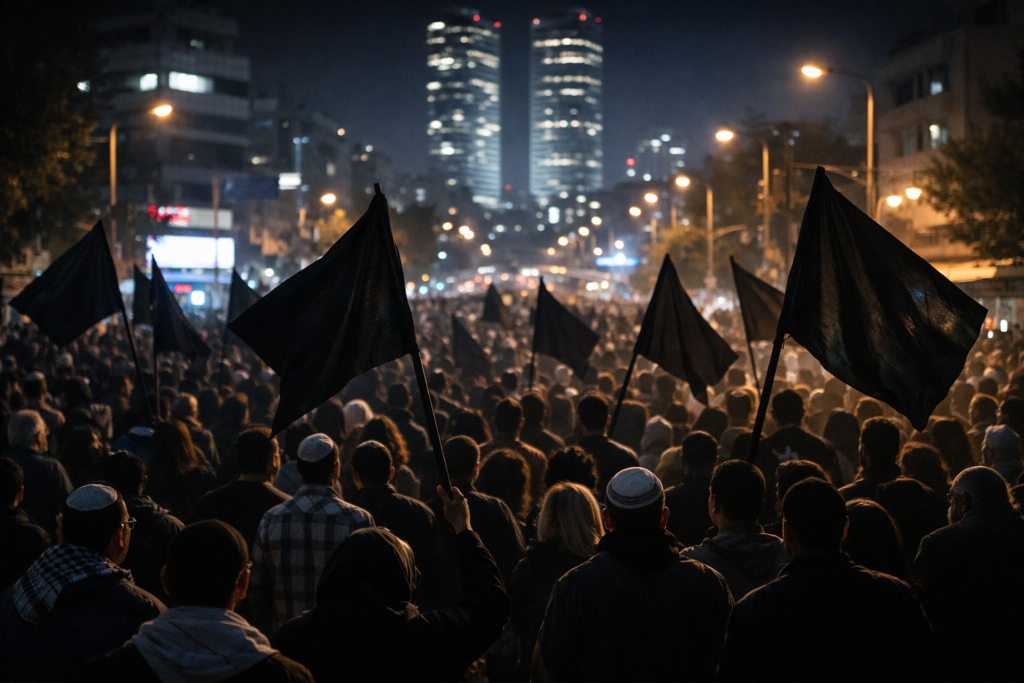 31 января в Тель Авиве состоялась беспрецедентная акция протеста. На этот раз под черными флагами “антибибистов” маршировали единым фронтом евреи и арабы. Арабские СМИ сообщили, что в акции приняли участие порядка 10,000 представителей общины. Формальным поводом для участия в регулярной антиправительственной акции для арабов стал протест против разгула преступности в арабском секторе.