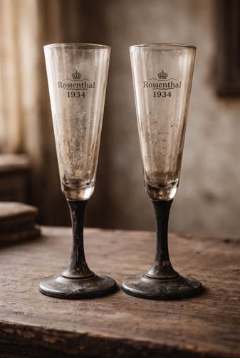 Я зашла. В магазинчике негде было ступить. Все было заставлено. Какие-то фарфоровые куклы, золоченые рамы, целая армия разнокалиберных остатков разных сервизов, гобелены, вышитые подушечки, вазочки всех мастей. И все такое тонкое, хрупкое, изящное и бесконечно старое. Обычно продавцы в подобных местах под стать товару — экстравагантные, утонченные. Но тут продавщицей оказалась плотно сбитая очень серьезная и очень конкретная баба. Белобрысая, с ямочками и нарисованными бровками. Само собой, что английский она не понимала. Говорила по-немецки, спокойно, размеренно, предлагая ту или иную вещь, видимо, убеждая в ее неотразимости. Я купила у нее вазочку, набор хрустальных рюмок и замечательную фарфоровую чашку с блюдцем, датированную 1948 годом. Поблагодарив, я уже пробиралась к выходу, когда она вдруг неожиданно резко окрикнула: «Фройляйн! Момент!» – и куда-то нырнула. Ну ладно, момент так момент. Ее не было минут десять, я уже начала нервничать. И тут она появилась – запыхавшаяся, в запачканной пылью блузке, с торжествующим взглядом. В руках у нее было два бокала. Узкие, длинные, с короткой зачерненной ножкой. Старые и некрасивые. Штамп сообщал, что сделаны они на фабрике Розенталь в 1934-м. Я улыбнулась и покачала головой, показывая, что, мол, не подходит. И пошла на выход.