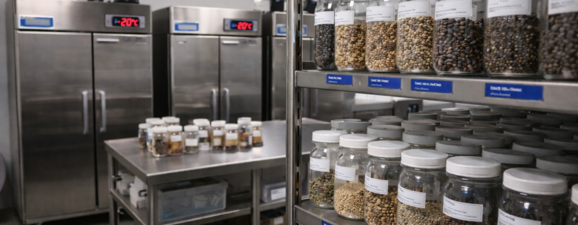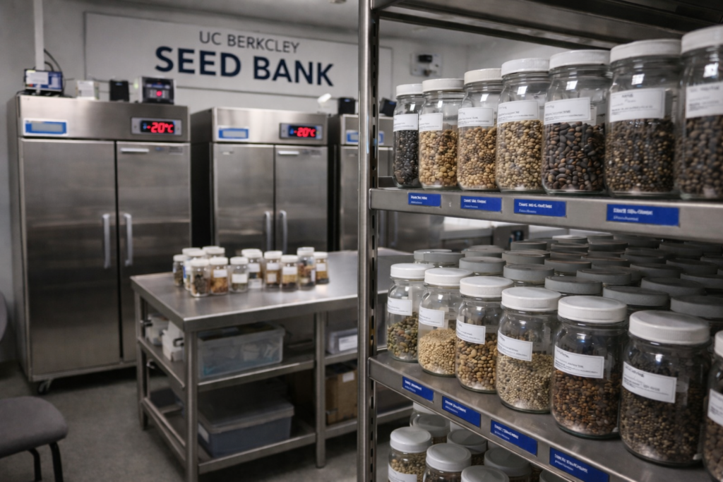 Семена хранятся в хранилище при температуре 0 градусов по Фаренгейту. Большинство семян, хранящихся в морозильной камере, происходят от растений, произрастающих в Калифорнии.