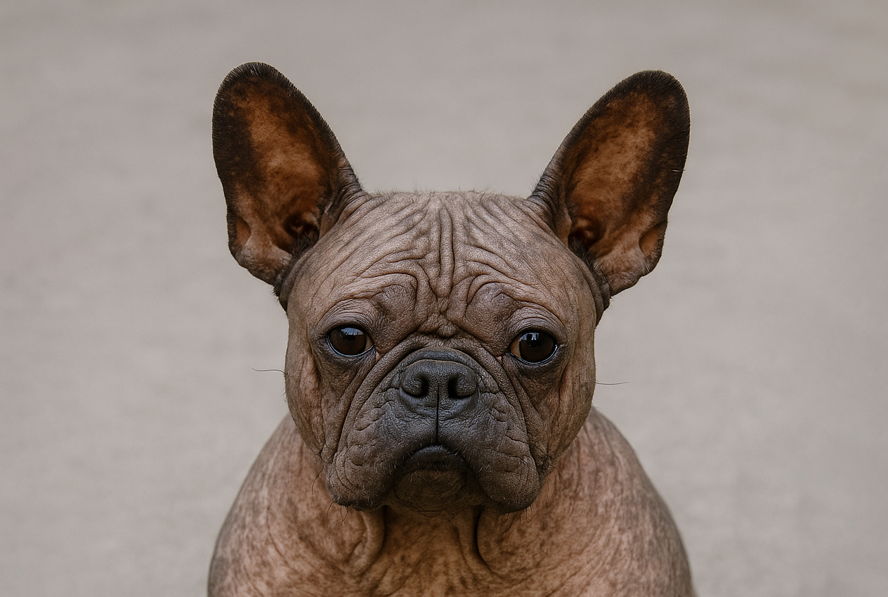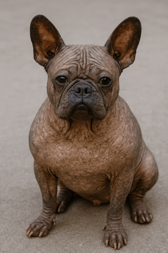 Петуния – бесшерстная французская бульдожка-метис — или, как сказала ее владелица Шеннон Найман, «естественно обнаженная». Петуния и ее братья и сестры были сданы хозяином-коллекционером из Лас-Вегаса, но теперь она живет комфортной жизнью в Юджине, штат Орегон.