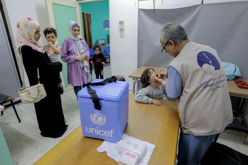 С одобрения Израиля, ВОЗ отправила в Газу 1,2 миллиона доз вакцин, каждый вакцинированный ребенок получил две дозы.