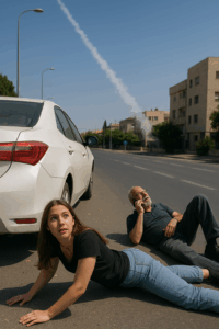Реалии наших дней. Если вас застал ракетный обстрел, а вы за рулем, то, следуя указаниям службы тыла, надо выйти из машины, отойти подальше, лечь на Святую землю и переждать десять минут. Ужас какой! – ахнут люди, не знакомые с нашим менталитетом. Ну да. Ужас. Но не ужас-ужас! Тут всё дело в том, где повалиться. И кто повалился рядом. Иногда такие типажи встречаешь, хоть портрет пиши.