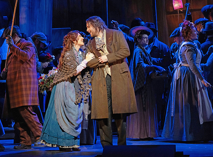 В «Богеме» (дирижер Ramon Tebar, режиссер-постановщик John Caird, дизайнер-постановщик David Farley, ответственный за костюмы Jai Alltizer, гример Jeanna Parham) с видеорядом все было хорошо. Главные герои Рудольф (Evan LeRoy Johnson) и Мими (Nicole Car) и все остальные персонажи, такие как Мюзетта (Brittany Renee) благодаря своим соответствующим замыслу внешним данным и правильно подобранным костюмам убедительно выглядели на сцене.