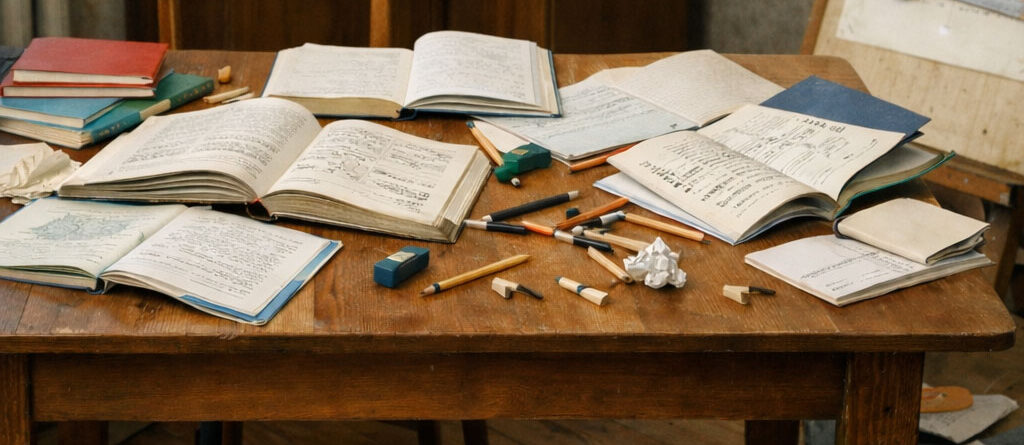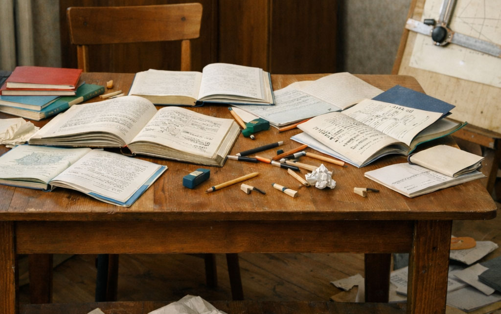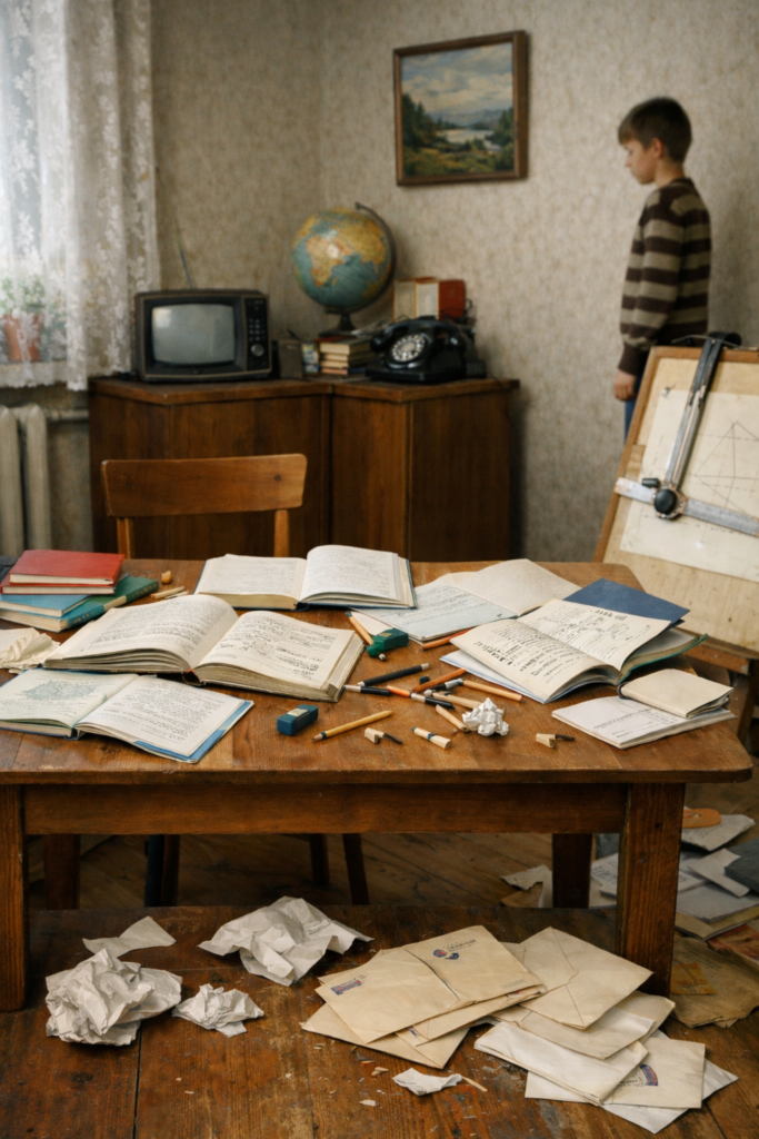 До земной оси добираться далеко. А к десяти вечера надо было быть дома. Но, по крайней мере, я мог сделать свой стол, как у профессора математики, члена Пушечного клуба Дж. Т. Мастона. Что я и сделал: вывалил на стол все учебники, некоторые раскрыл на где угодно, раскидал по всему столу раскрытые тетради, пару поломанных карандашей.