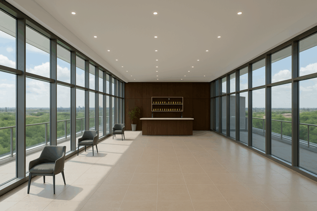На визуализациях помещения видно, что в нем будет бар, окна от пола до потолка с видом на улицу и площадка, которую можно переоборудовать по-разному, в том числе под лаунж и галерею.
