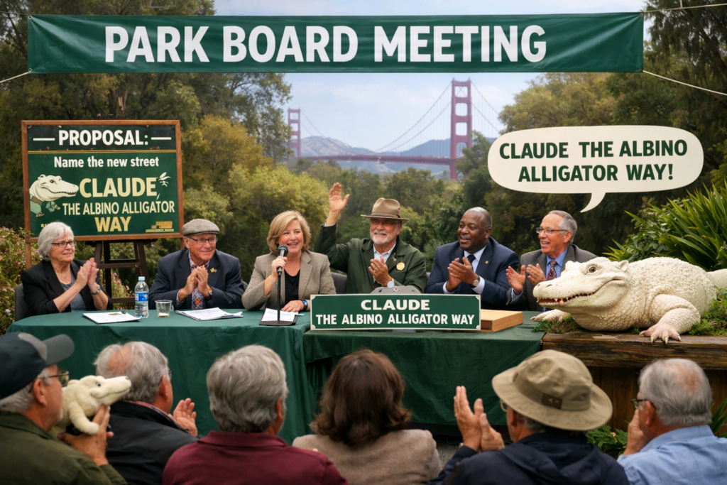 Мэрия Сан-Франциско планирует назвать в честь крокодила улицу в парке Золотые Ворота. Проводилось общественное голосование, чтобы решить, какой участок парка станет улицей «Альбиноса-аллигатора Клода» («Claude the Albino Alligator Way»).
