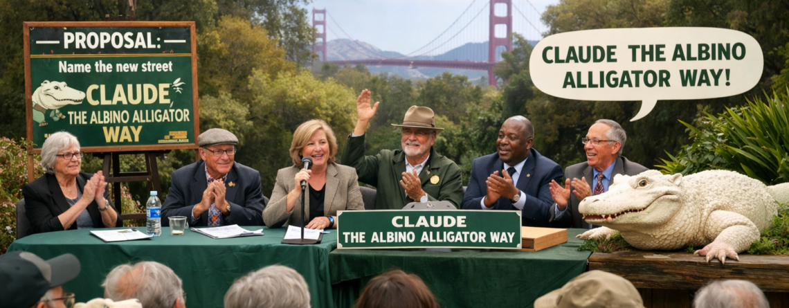 Как сообщает Mission Local, член Совета наблюдателей Сан-Франциско Мирна Мелгар представила резолюцию о присвоении улице в парке Золотые Ворота имени Клода, 30-летнего уникального аллигатора-альбиноса из Калифорнийской академии наук, умершего от рака печени.
