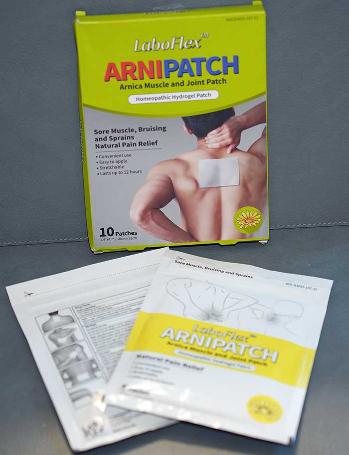 Если в походе заныло плечо или заболела спина, новая противовоспалительная технология, разработанная в Корее компанией LaboFlex, облегчит боль с помощью пластыря с гидрогелем LaboFlex Arnipatch. Этот пластырь содержит гомеопатический анальгетик Arnica 1X HPUS, который, со слов производителя, снимает воспаление, производит немедленный болеутоляющий эффект и работает в течение 12 часов днем и ночью. Растение арника из семейства сложноцветных известно как народное средство, помогающее при воспалениях, синяках и отеках. Гомеопатические препараты на основе арники применяют для снятия боли в мышцах и суставах. Как утверждают в компании, пластырь Arnipatch также помогает при артрите, болях в локтях и коленях, увлажняет кожу и может употребляться в сочетании с другими обезболивающими.