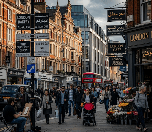 Мы вышли на улицу и пошли по направлению к большому проспекту, который вел к Гайд Парку. По пути то на одной, то на другой стороне светились неоновые вывески ресторанов и кафе. Все они были на арабском языке. Справедливости ради надо отметить, что под большими горящими буквами арабской вязи, скромно горели английские буквы перевода. Название ресторанов поражало: «Ливанский кедр», «Звезда востока», «Сирийская кухня» и т.д. У входа в некоторые заведения стояли столики, за которыми сидели восточные мужчины и курили кальян. На проспекте, по которому мы шагали, не встретилось ни одной женщины.